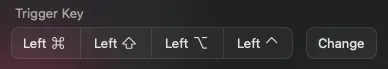 他にも、ウィンドウ操作アプリのLoopではTriggerキーとしてHyperキーを設定したり。