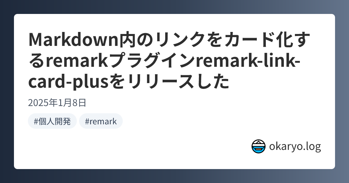 remark-link-card はリンクをカード形式で表示するためのRemarkプラグインで、本サイトでもリンクカードの実現のためにこれを使用していました。ただ、現在はほぼメンテされていないので、移行することにしました。