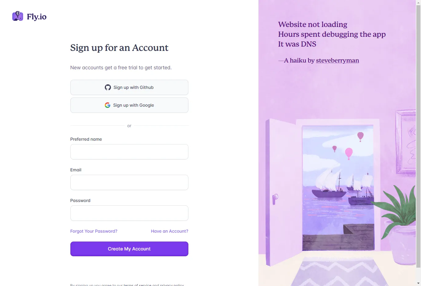 Login up sign upのセルを実行すると、fly.ioにログインするためのリンクが表示されます。表示されるリンクをクリックしてログインします。fly.ioのアカウントが無い場合は、ここでアカウントを作成します。